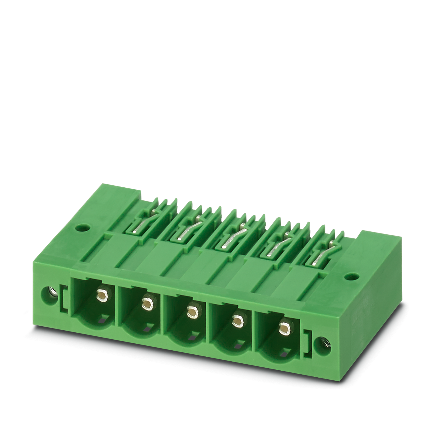 PCB headers, nominal cross section: 16 mm², color: green, nominal current: 76 A (41 A in combination with PC 6 plug), rated voltage (III/2): 1000 V, contact surface: Ag, contact connection type: Pin, number of potentials: 4, number of rows: 1, number of positions: 4, number of connections: 4, product range: PC 6-16/..-G1F, pitch: 10.16 mm, mounting: Wave soldering, pin layout: Linear pinning, solder pin [P]: 4 mm, number of solder pins per potential: 3, plug-in system: COMBICON PC 16, Pin connector pattern alignment: Standard, locking: Screw locking mechanism, mounting method: Threaded flange, type of packaging: packed in cardboard